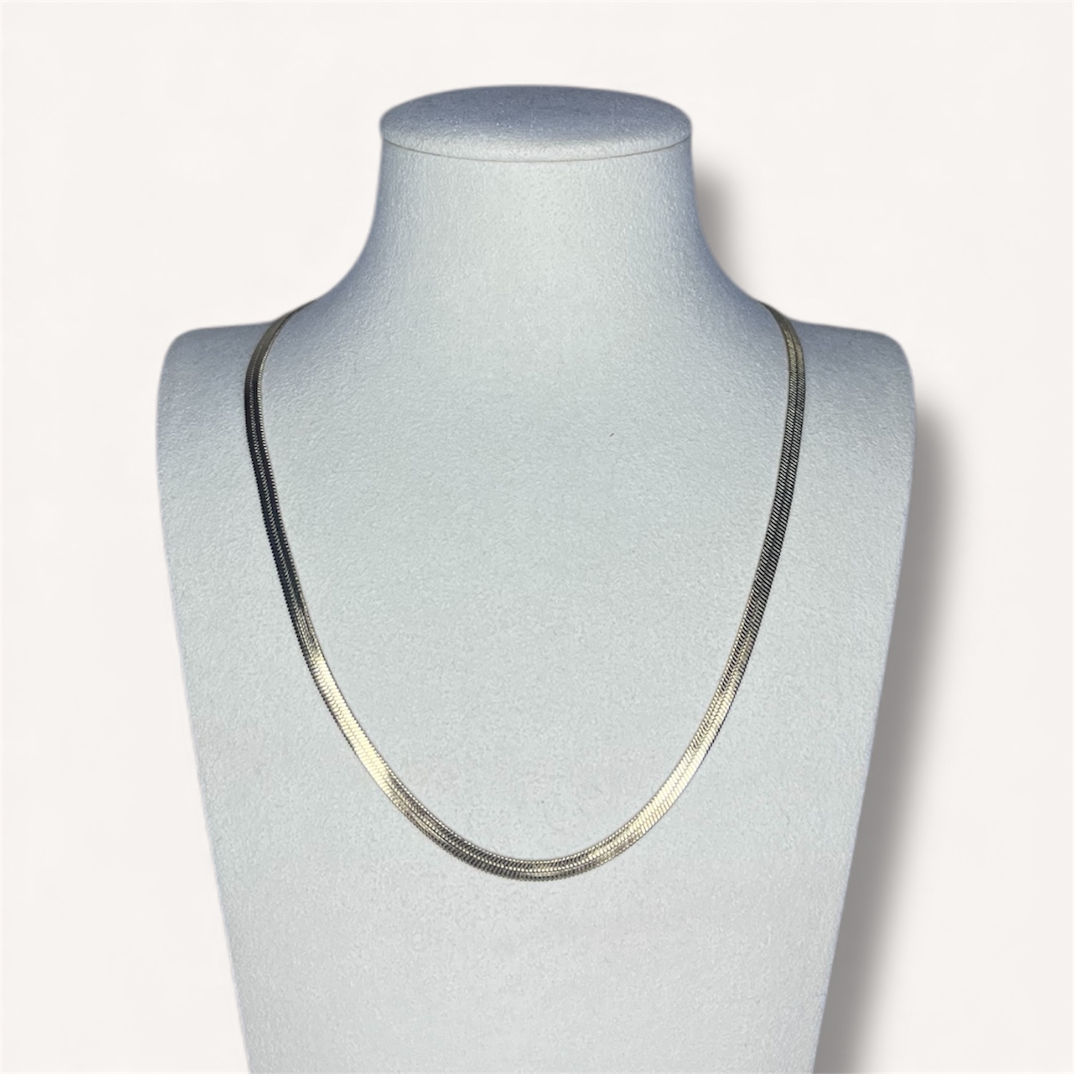 Deze platte snake ketting heeft een strakke, soepele vorm en valt mooi om de hals. Door het gladde ontwerp heeft de ketting een rustige en moderne uitstraling.