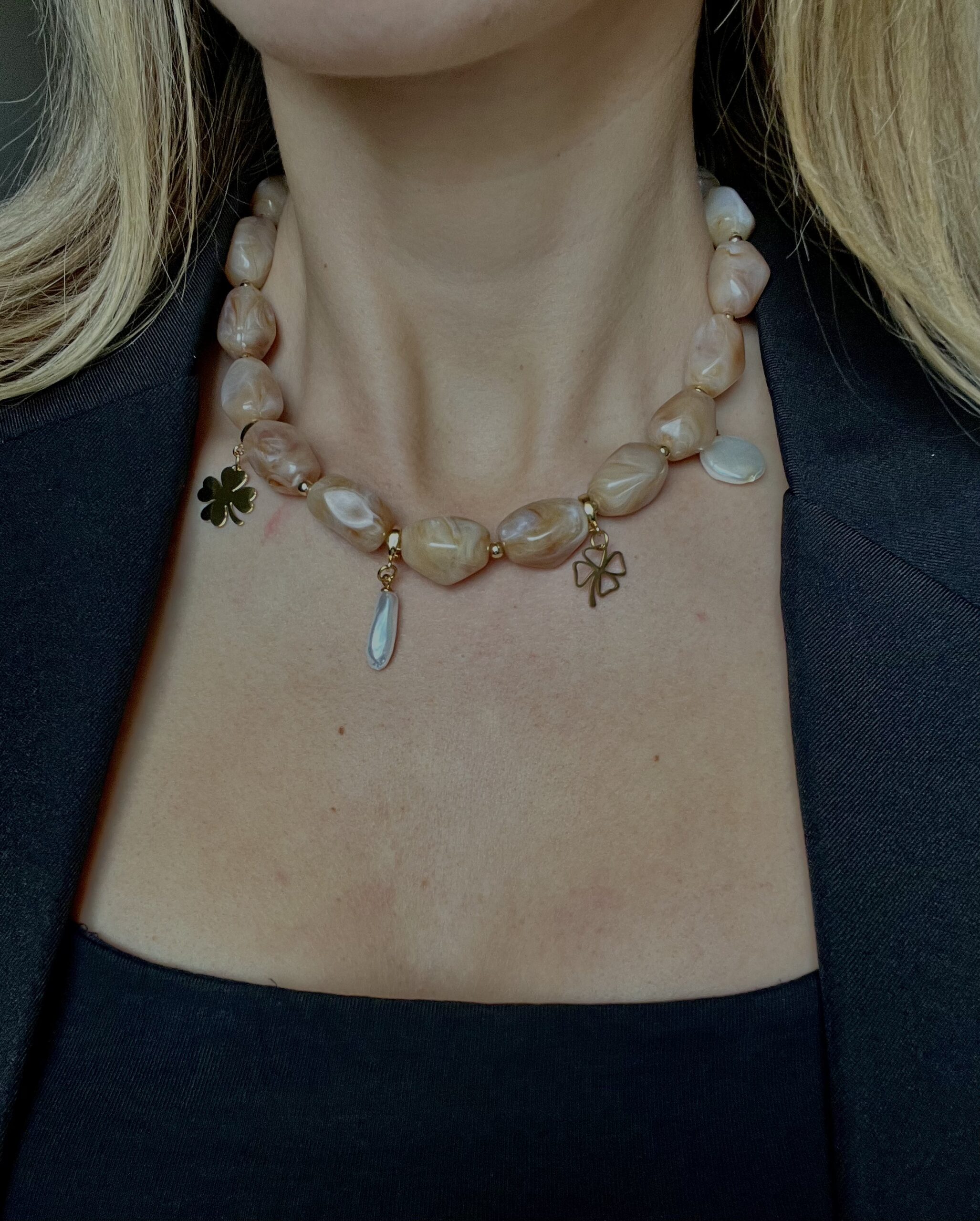Deze combi deal bestaat uit een prachtige set charms uit onze collectie, gecombineerd met de bruine kralenketting voor een stijlvol statement sieraad. De warme bruine tinten in combinatie met de speelse charms maken dit item een echte eyecatcher.